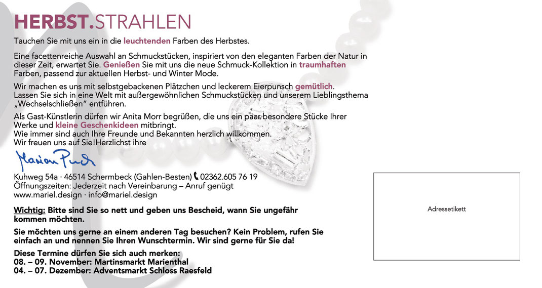 Genießen Sie mit uns, bei einem heißen Eierpunsch, unsere neue Kollektion und lassen Sie sich entführen in die Welt der Edelsteine und Perlen.